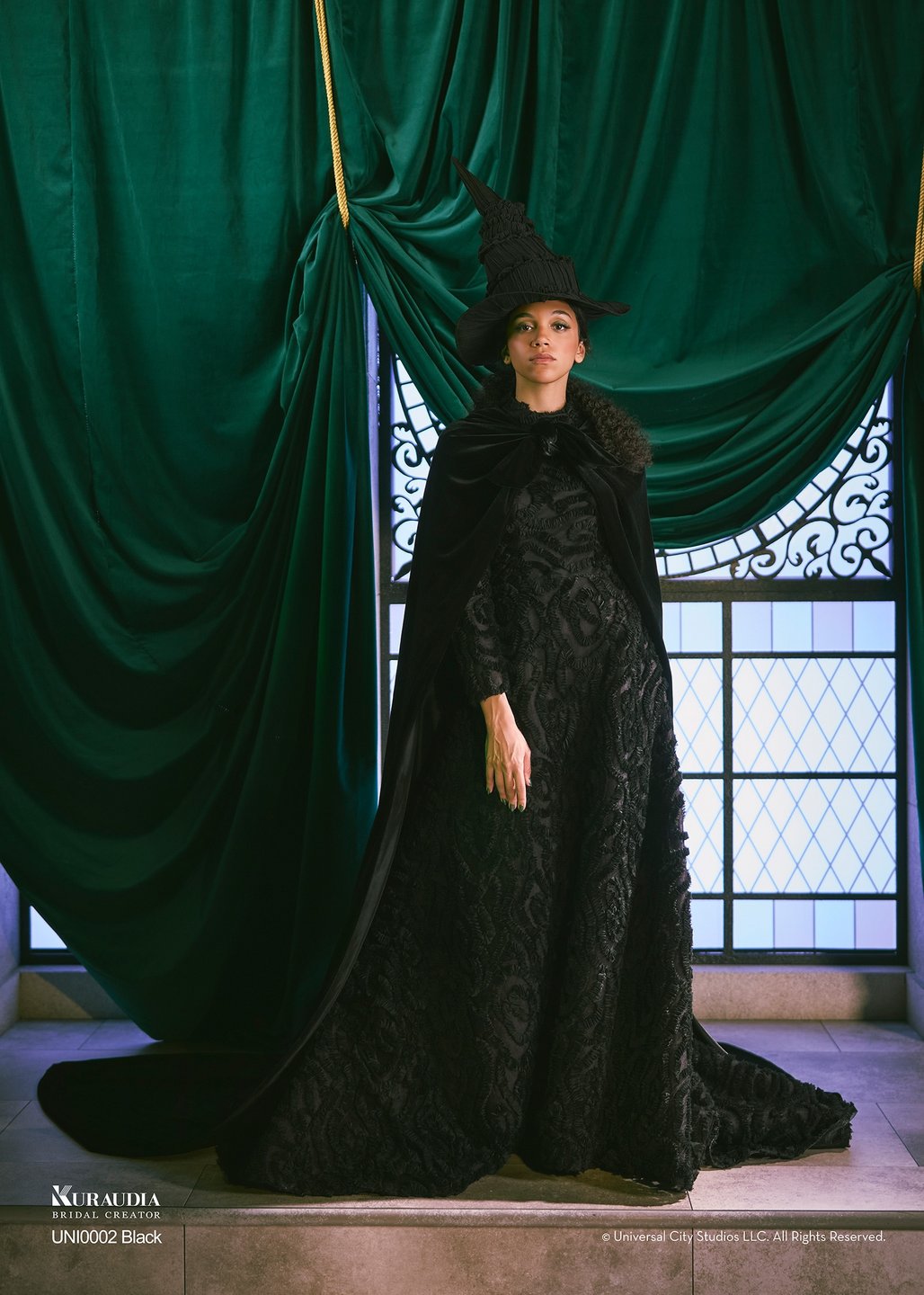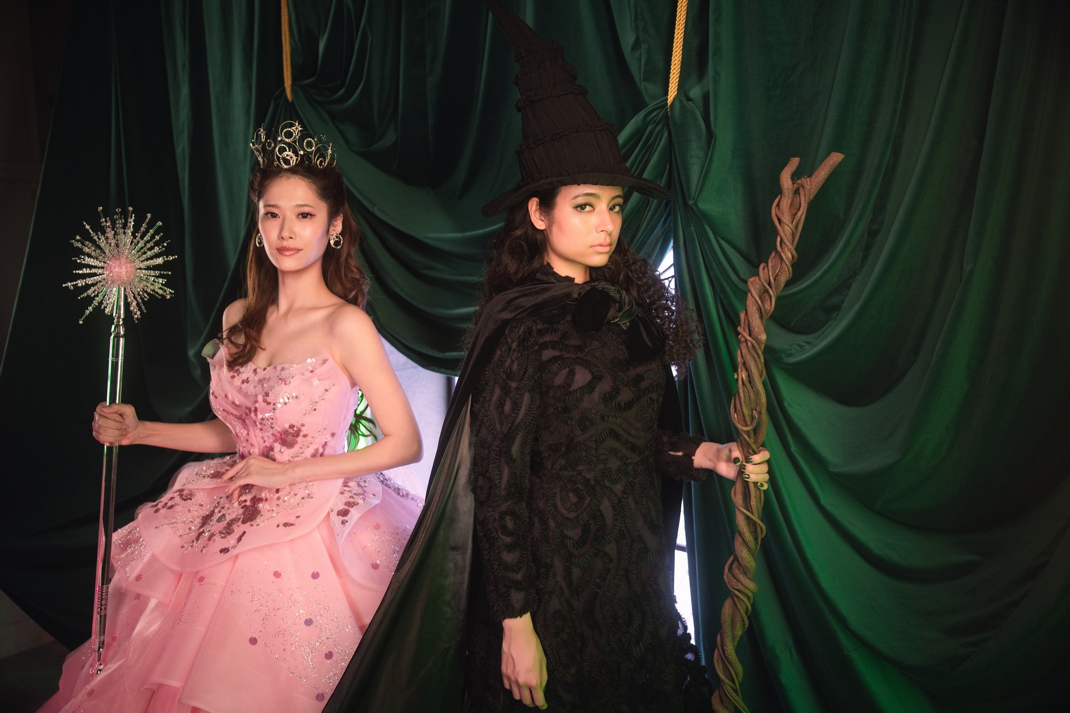 その強さと美しさを表現したドレスに、帽子・マント・ほうきなどの象徴的なアイテムを添えて、「エルファバ」の世界を纏った撮影が叶います。