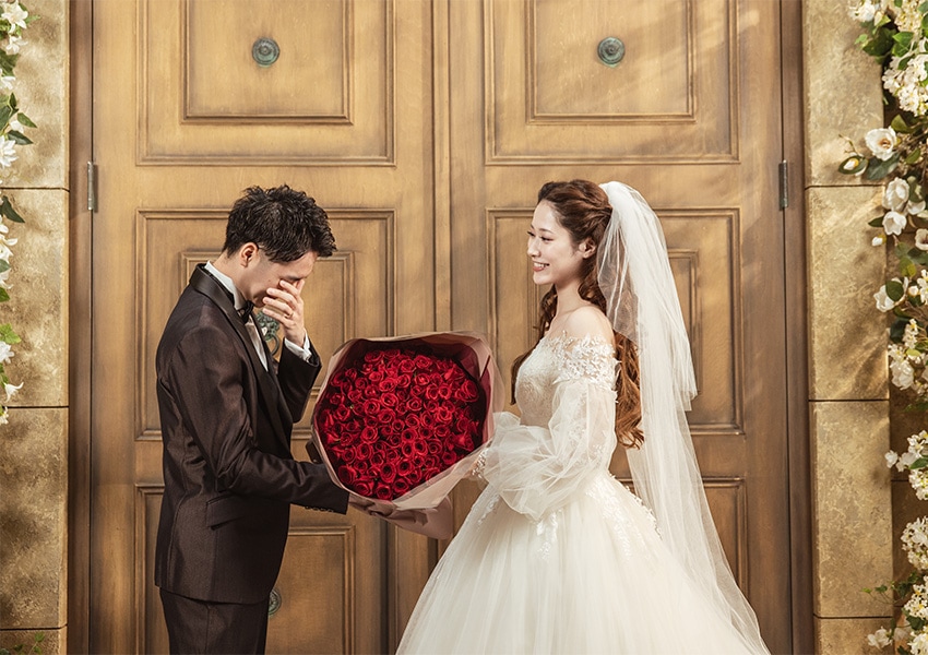 スタジオプランの撮影中に、花束やプレゼント、プロポーズなど
