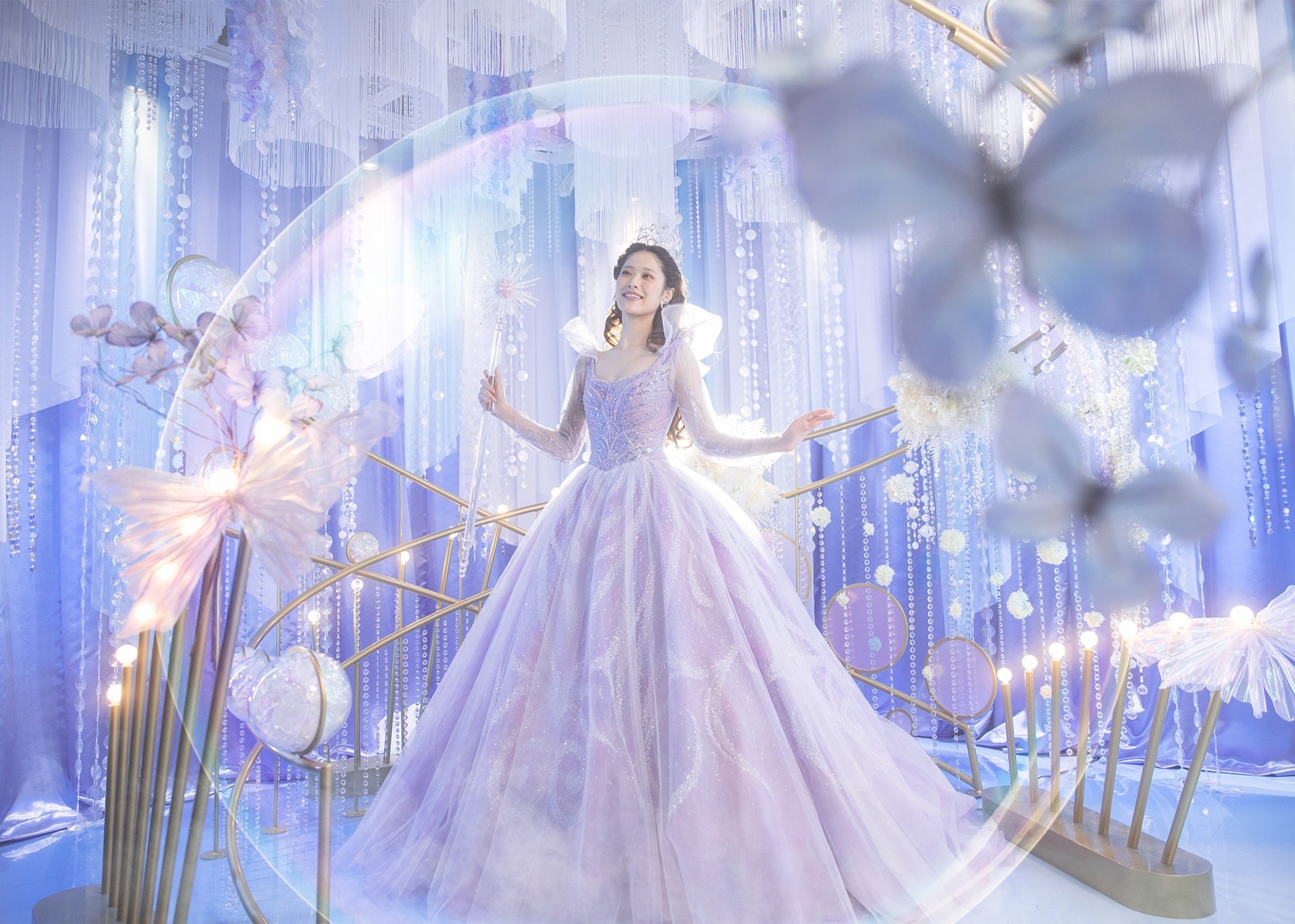 ふたりの劇中衣裳をモチーフにしたオリジナルドレスを纏い、新たなステージを迎えた物語の世界を、美しい写真で表現できます。