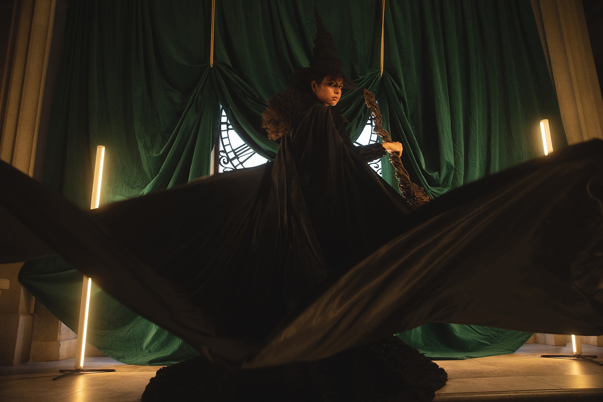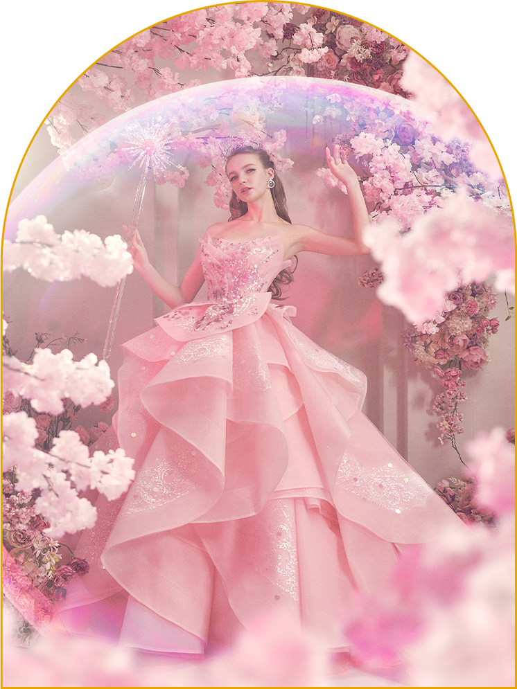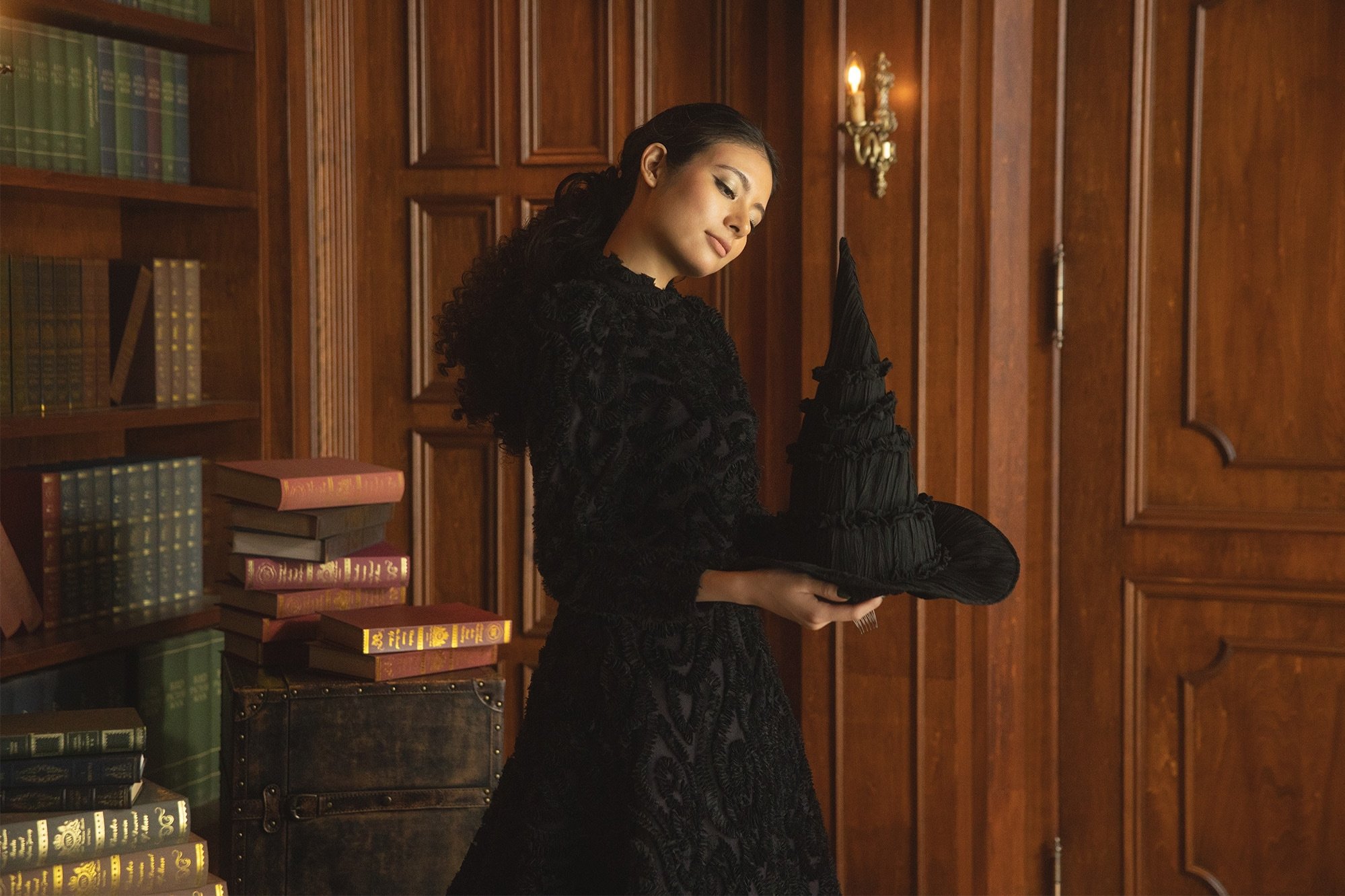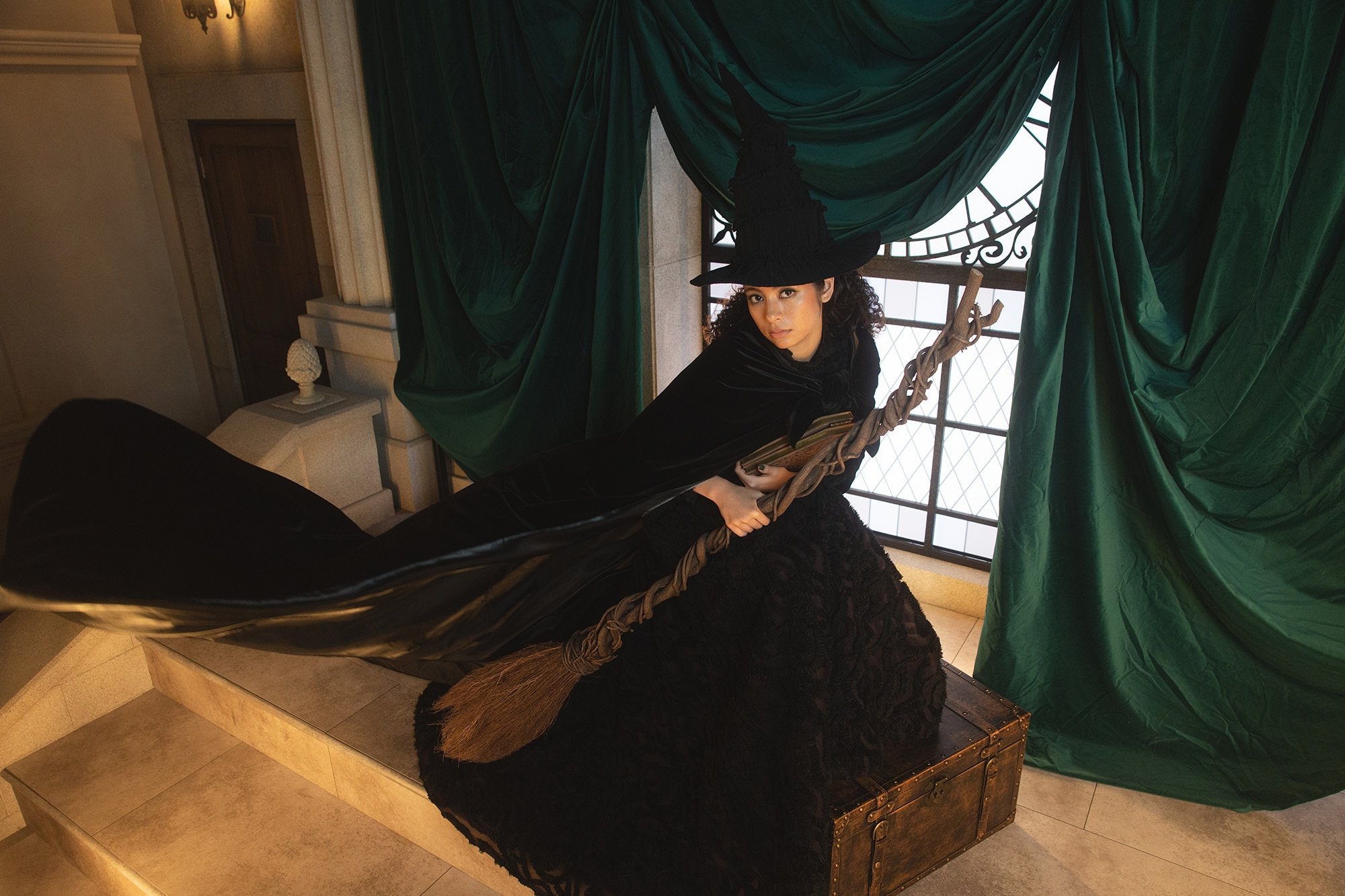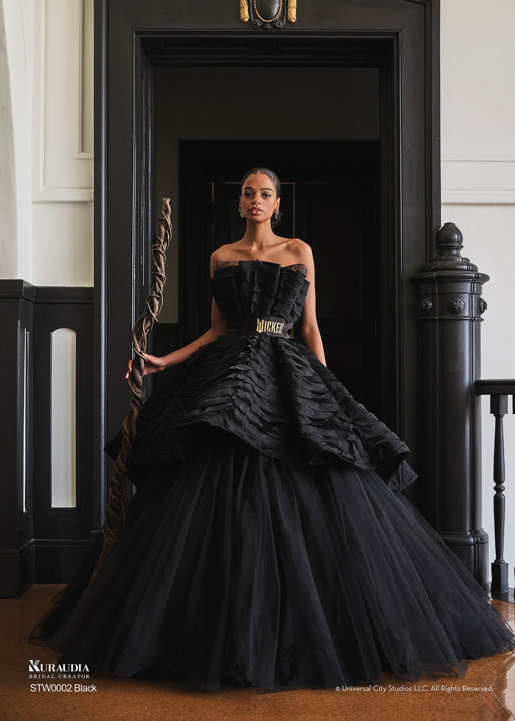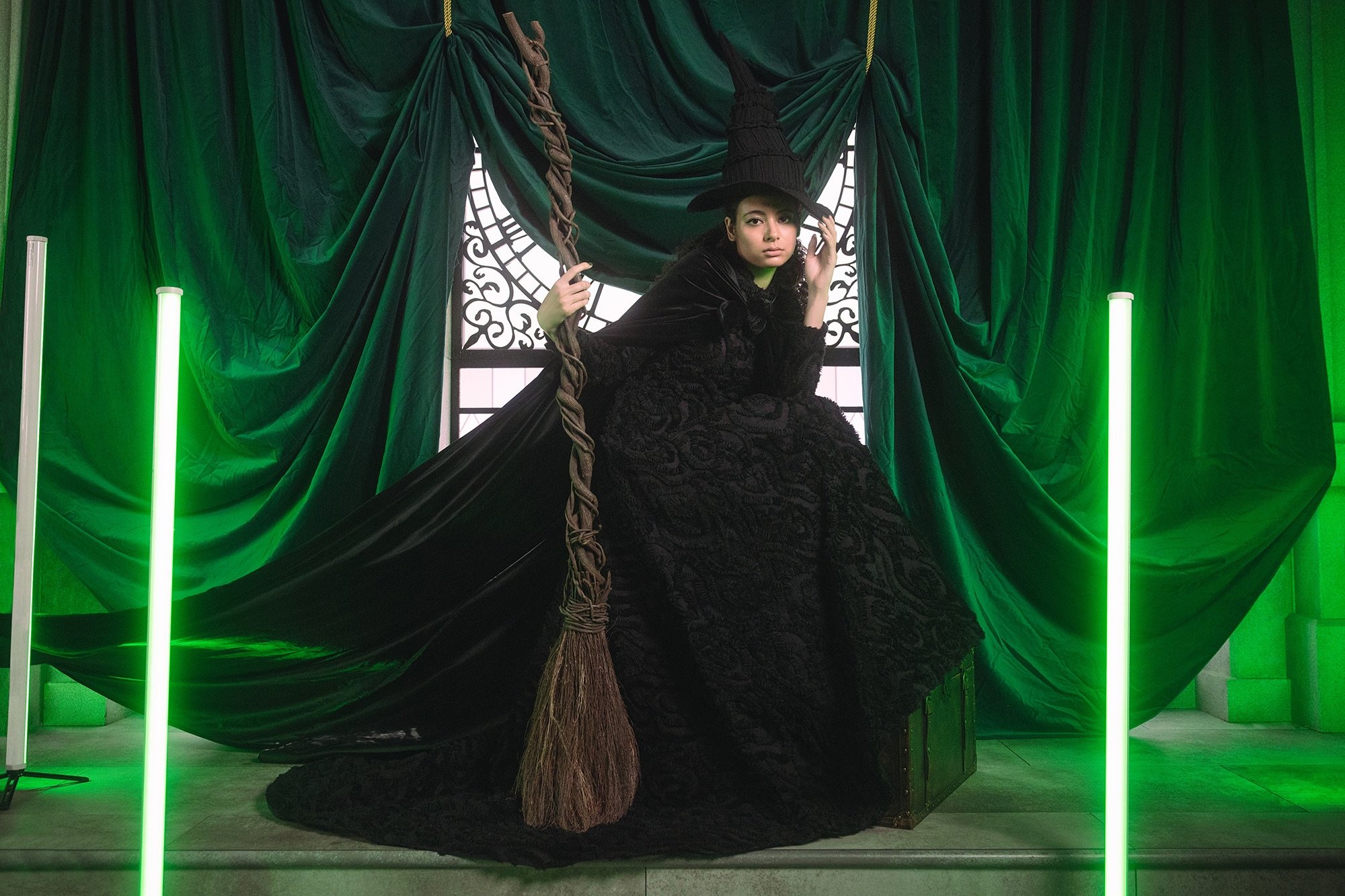 その強さと美しさを表現したドレスに、帽子・マント・ほうきなどの象徴的なアイテムを添えて、「エルファバ」の世界を纏った撮影が叶います。