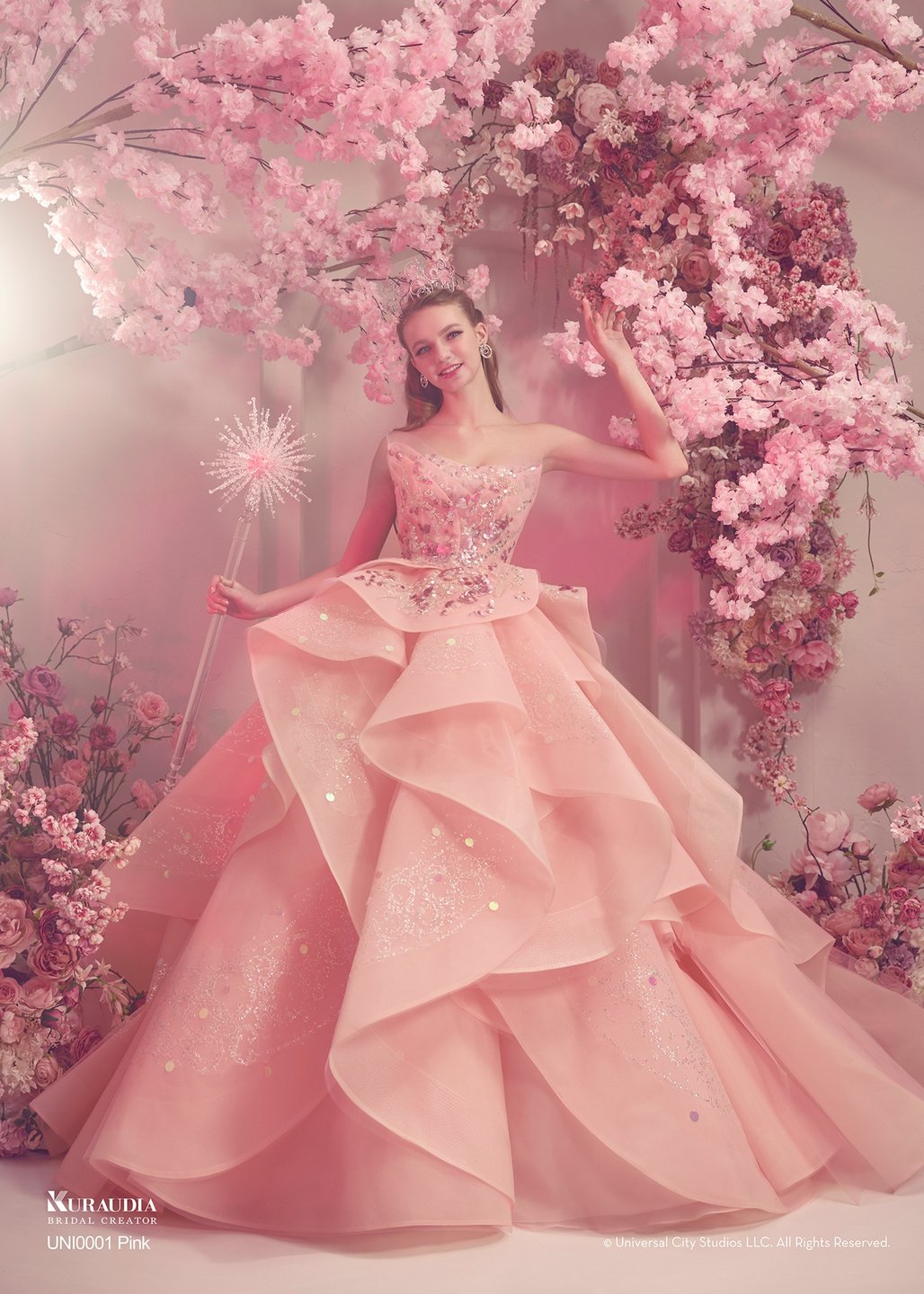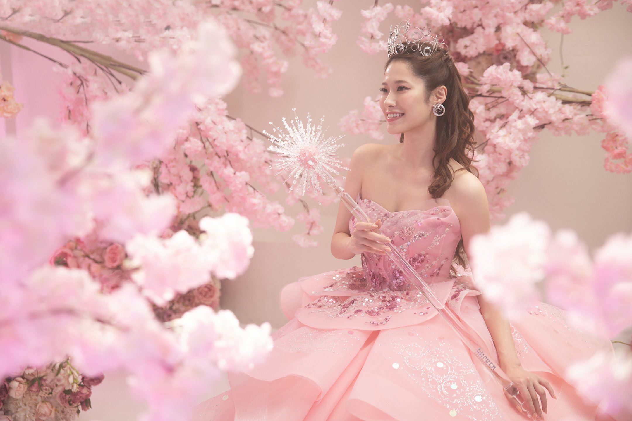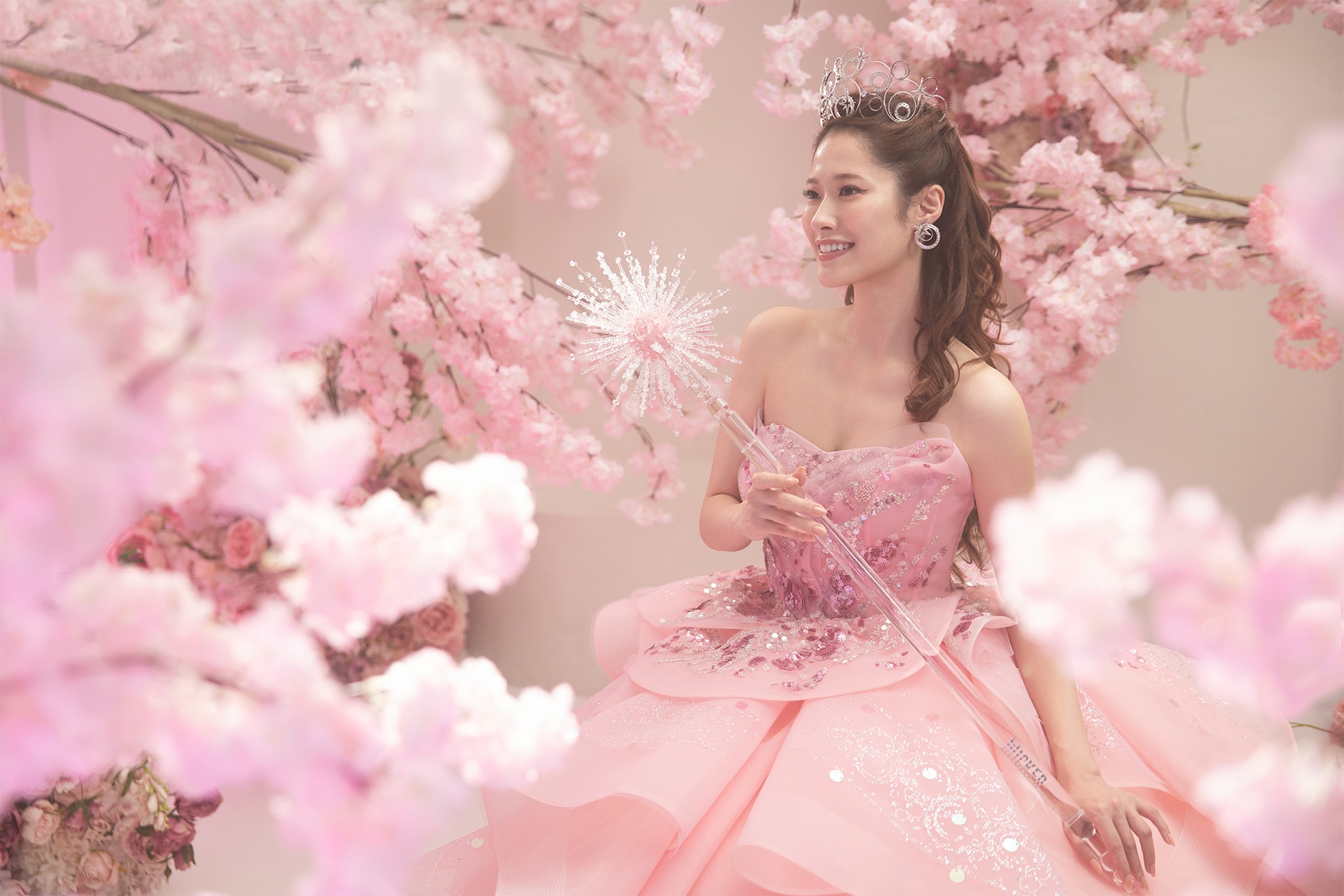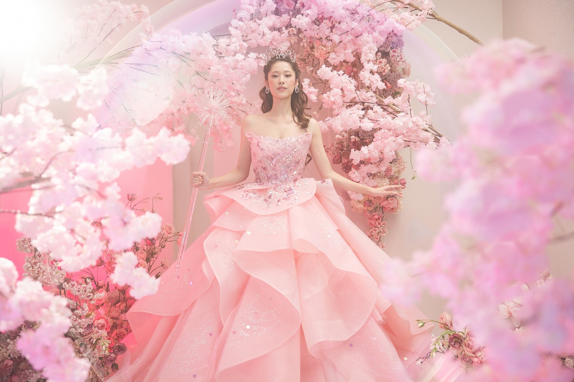 光が舞い降りたように輝くドレスに、ティアラや魔法の杖など煌めくアイテムを手にして。