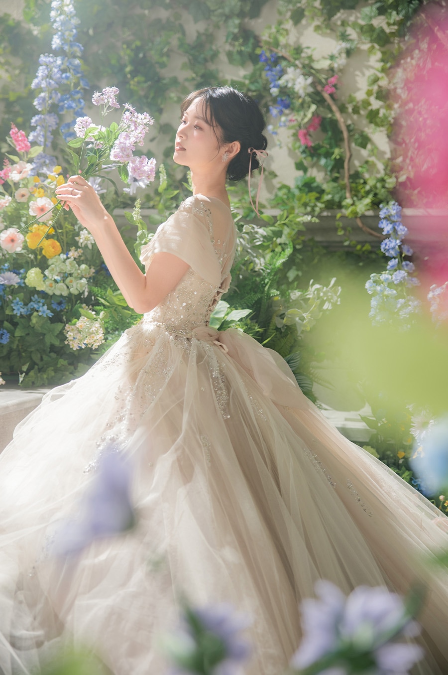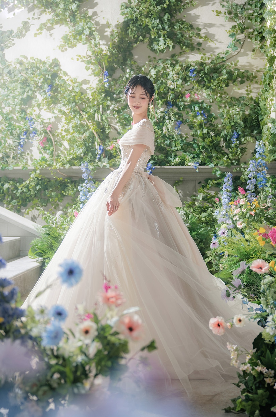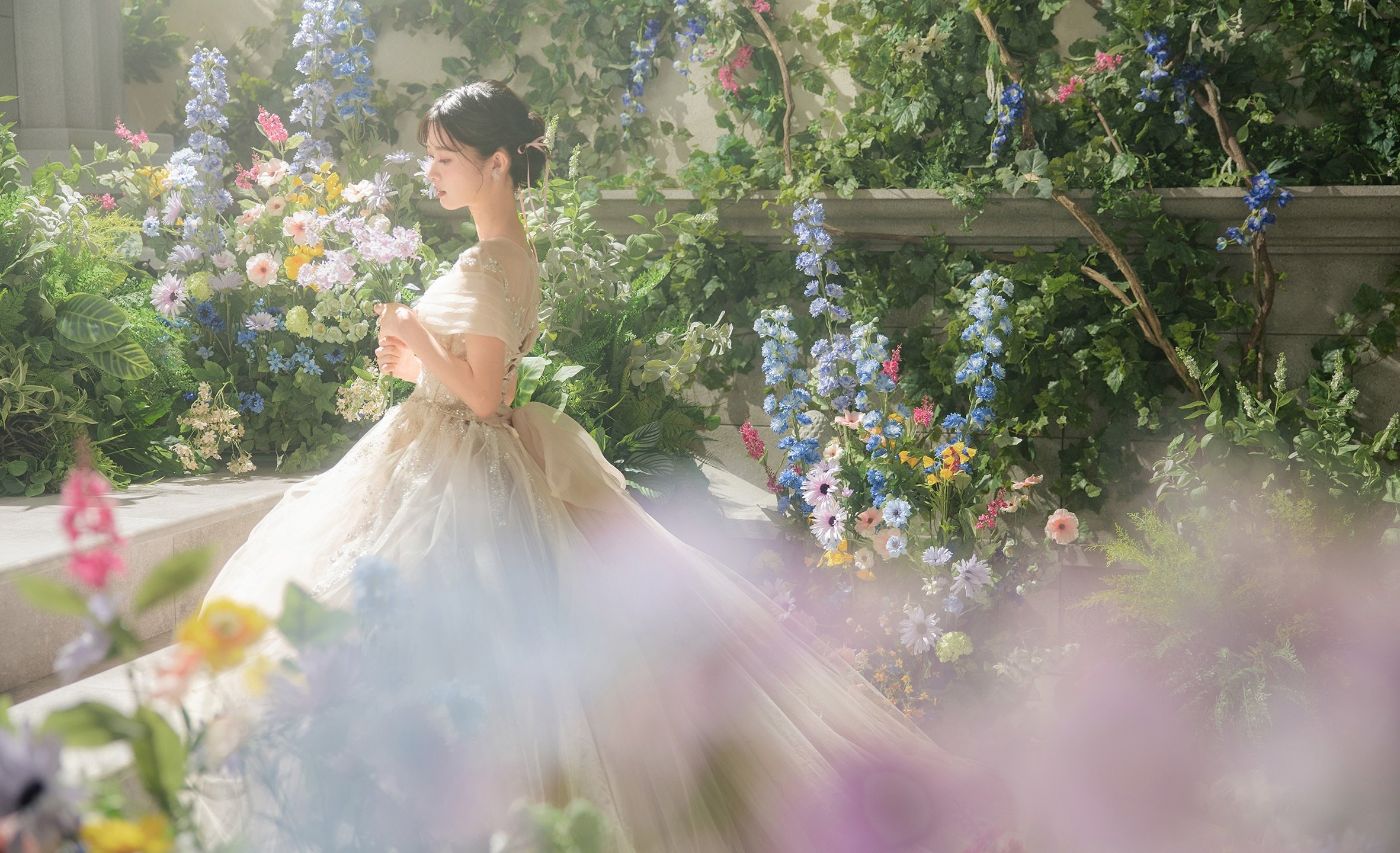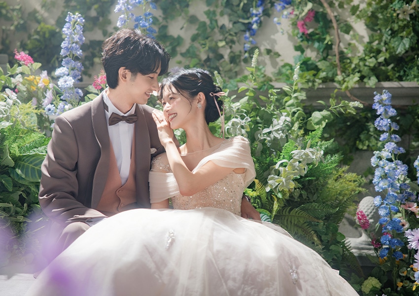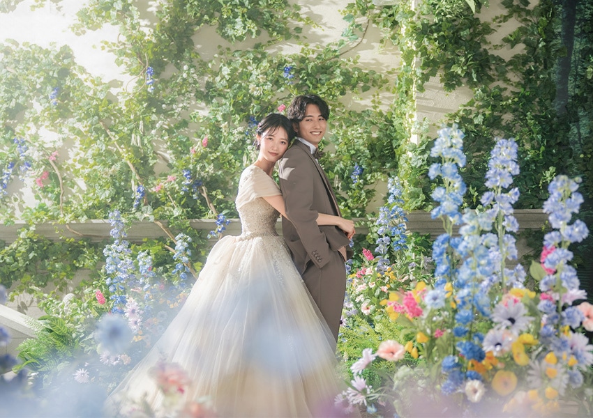 城壁を這う蔦や野に咲く花で埋め尽くされた一角は、お城を抜けだしたお姫様が休息する庭のよう。 自然体のショットから作り込んだシーンまで幅広く楽しめる空間です。