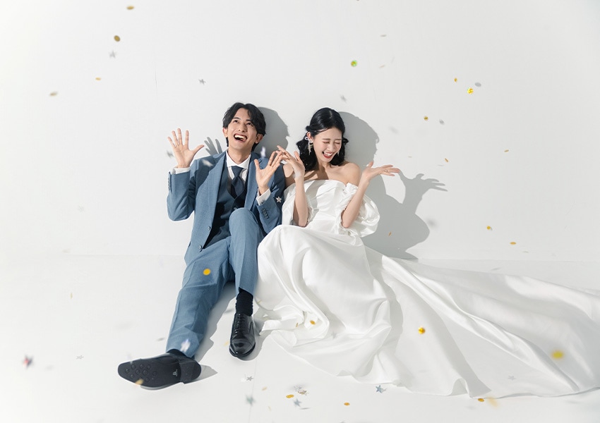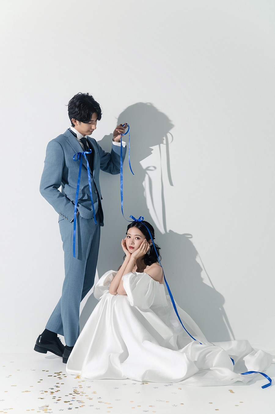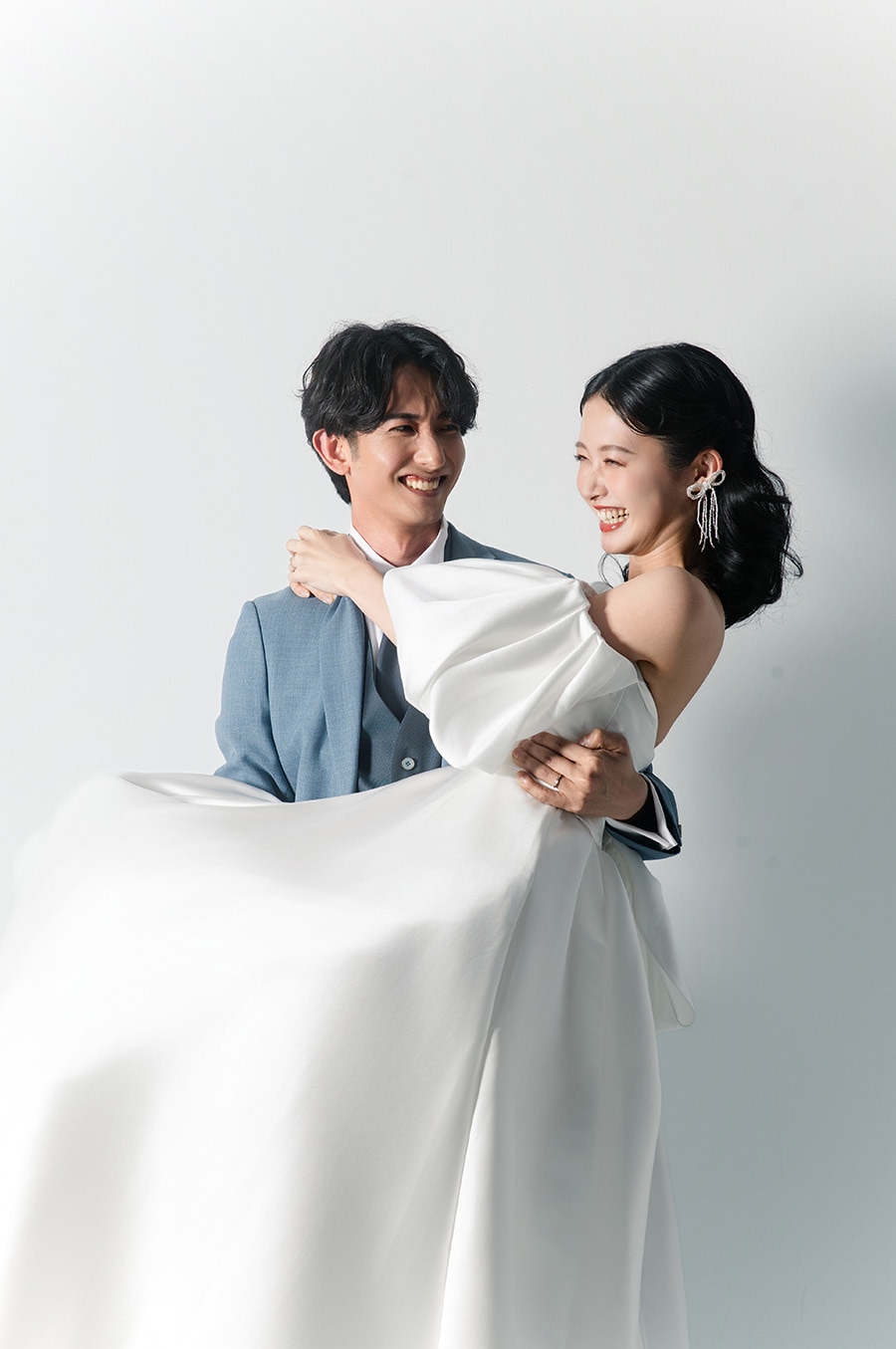 「白ホリゾント」とは、白一色の背景のこと。 そのまま撮影するのはもちろん、コンセプトに合わせてバックペーパーを選べば、おふたりが思い描いたイメージをかたちにできます。