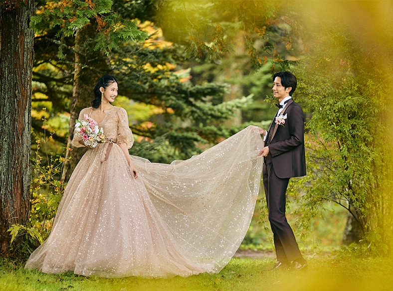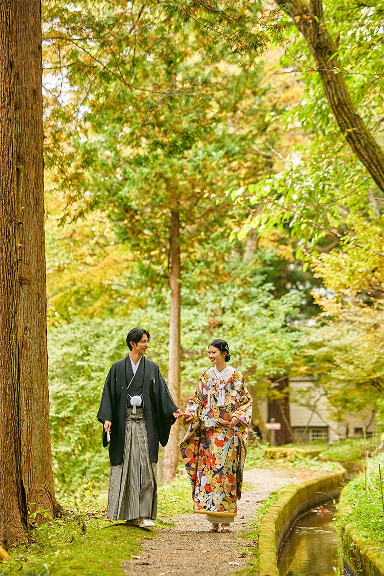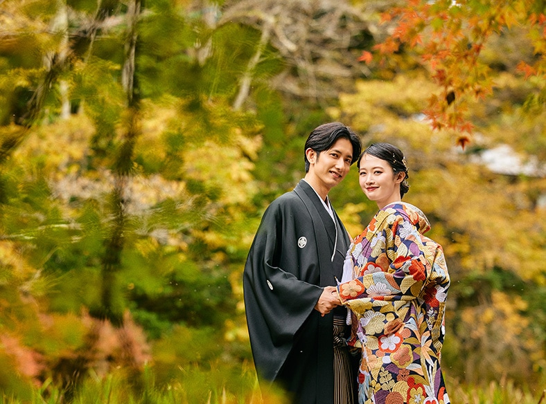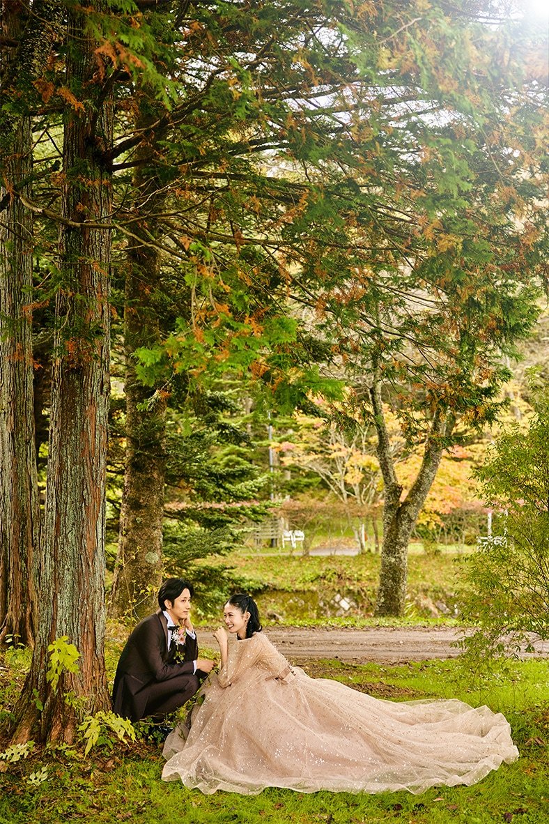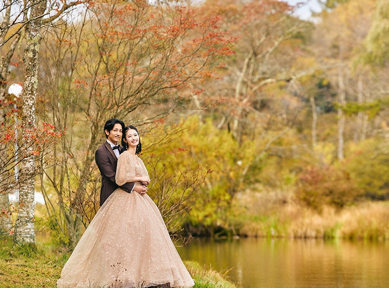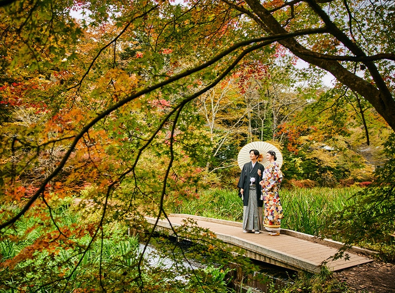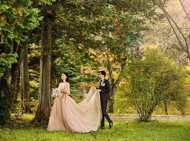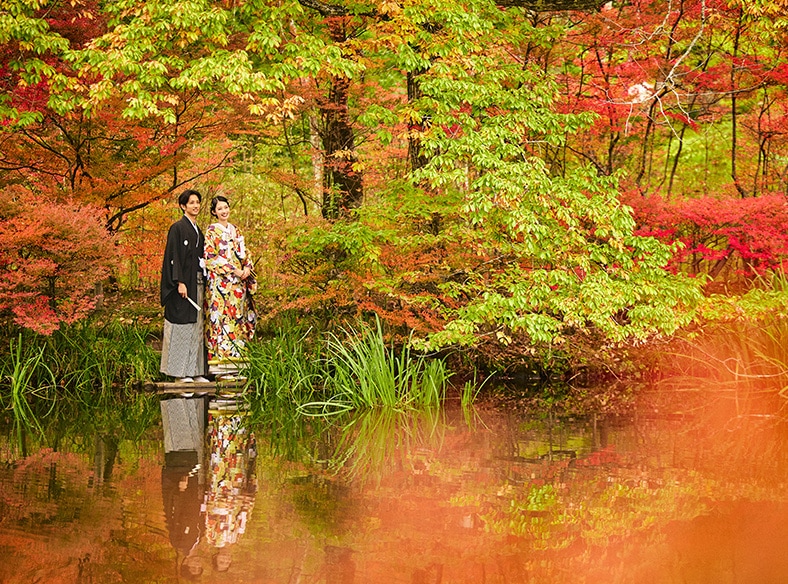 美しい紅葉や桜を前に和装で…瑞々しい新緑に囲まれてドレスで…和装洋装どちらも楽しめる軽井沢ならではのフォトウエディング